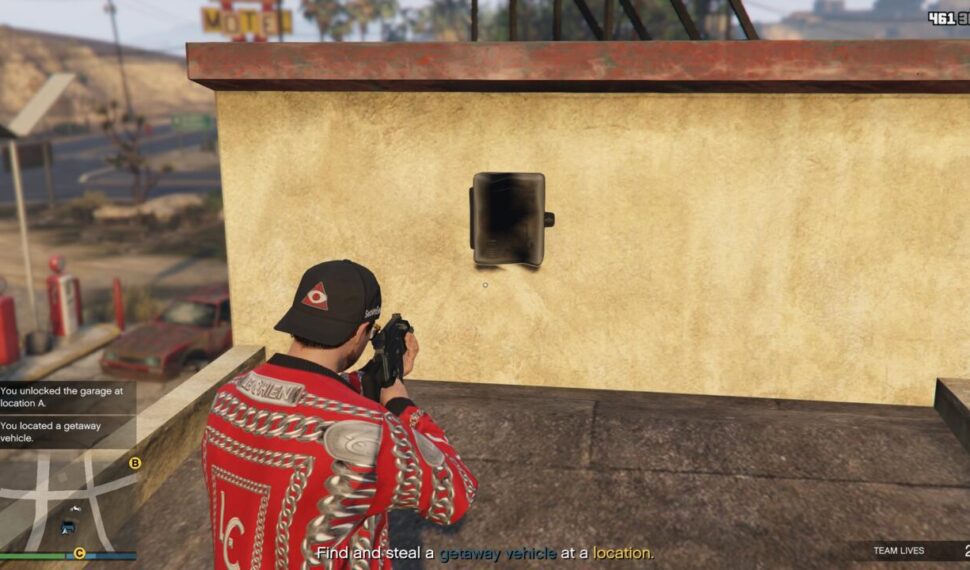 當您前往地圖上的 A 點位置時,您需要找到所有 Marabunta Gang 敵人所在的車庫。走到車庫後面,看看屋頂的一半。您應該會在牆上看到一個灰色的小電箱。射擊盒子,打開車庫,讓你偷走裡面的車輛並將其開出去。你可以選擇殺死或不殺死那裡的敵人,但無論如何,他們都會在你開始開車後追你到文森的車庫。
