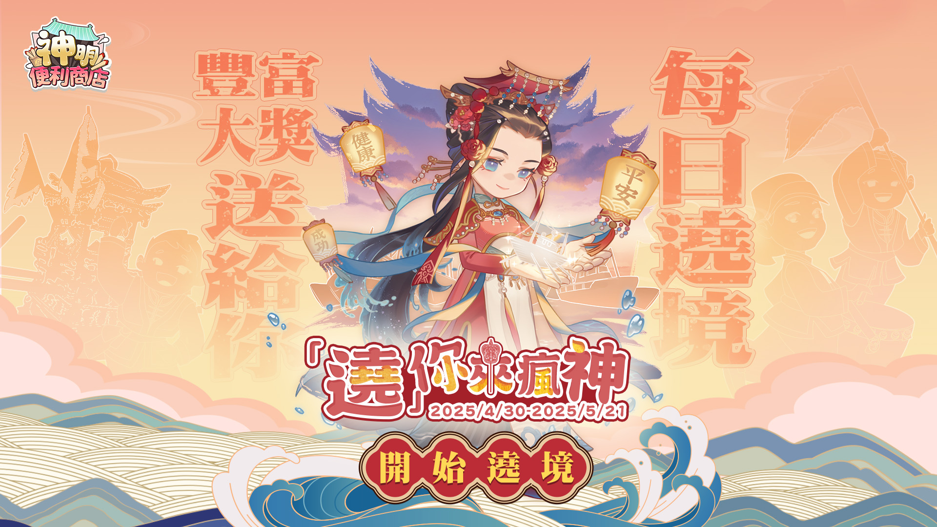 即日起至 2025/05/21 23:59 , 只要天天登入活動網頁 , 參與每日「遶境事件簿」任務 , 不但能解鎖各式媽祖沿途趣事 , 還能天天獲得限定虛寶獎勵!累積完成指定任務次數 , 還有機會抽中《神明便利商店》 x toomore 聯名限量 t 恤( 共 100 名) 名) 以及遊戲內的超人氣神明角色 以及遊戲內的超人氣神明角色 媽祖【海上守護神】( 共 10 名)!把滿滿的祈願送進神明心坎裡 並將祝福實體帶回家! 並將祝福實體帶回家! 並將祝福實體帶回家! 並將祝福實體帶回家! 並將祝福實體帶回家! 並將祝福實體帶回家! 並將祝福實體帶回家! 並將祝福實體帶回家! 並將祝福實體帶回家! 並將祝福實體帶回家! 並將祝福實體帶回家! 並將祝福實體帶回家! 並將祝福實體帶回家! 並將祝福實體帶回家! 並將祝福實體帶回家! 並將祝福實體帶回家! 並將祝福實體帶回家! 並將祝福實體帶回家! 並將祝福實體帶回家! 並將祝福實體帶回家! 並將祝福實體帶回家! 並將祝福實體帶回家! 並將祝福實體帶回家!