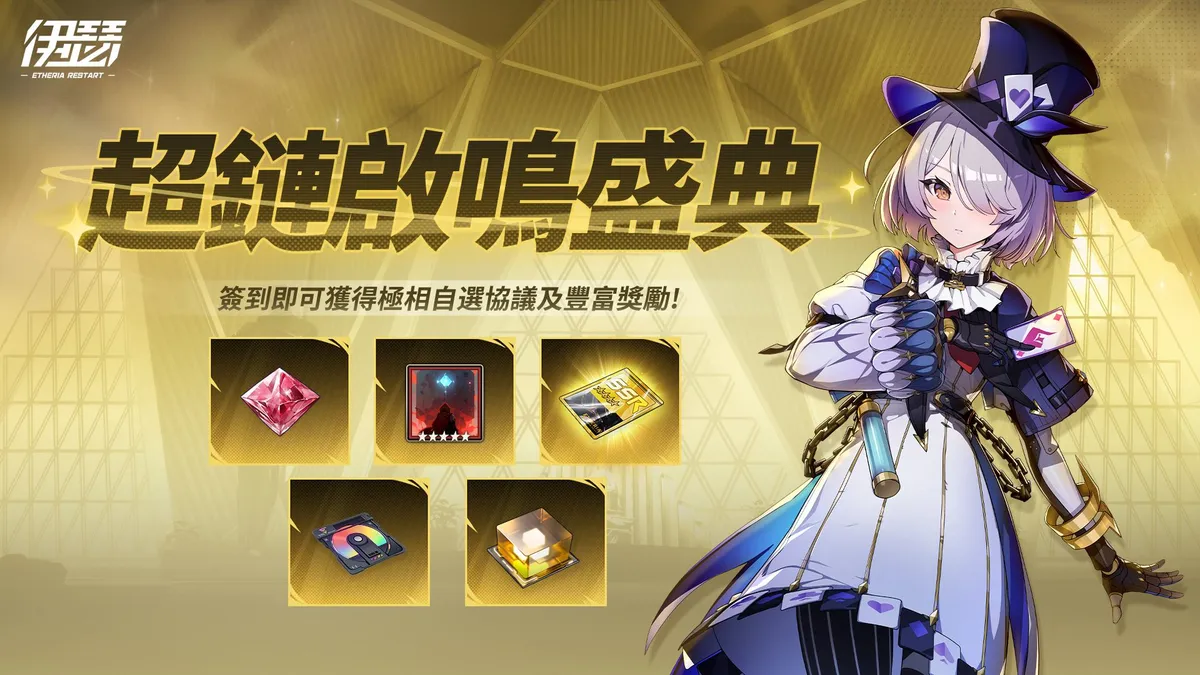 慶祝《伊瑟》全球全平台正式上線 , 盛大的【超鏈啟鳴盛典】即將揭幕!活動期間 , 超鏈者每日簽到即可領取豪華獎勵 其中包含 其中包含 SSR 光暗自選券、完美晶格、海德拉晶鑽等豐富資源 , 協助超鏈者迅速展開冒險旅程。這場屬於全體超鏈者的歡慶時刻 將為征途揭開璀璨序章! 將為征途揭開璀璨序章!