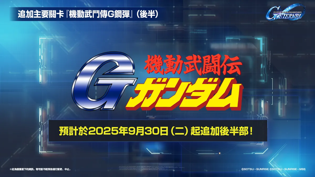 9月 30日起 , 主要關卡已新增「機動戰士鋼彈 UC 」以及「機動武鬥傳 G 鋼彈」(後半)!