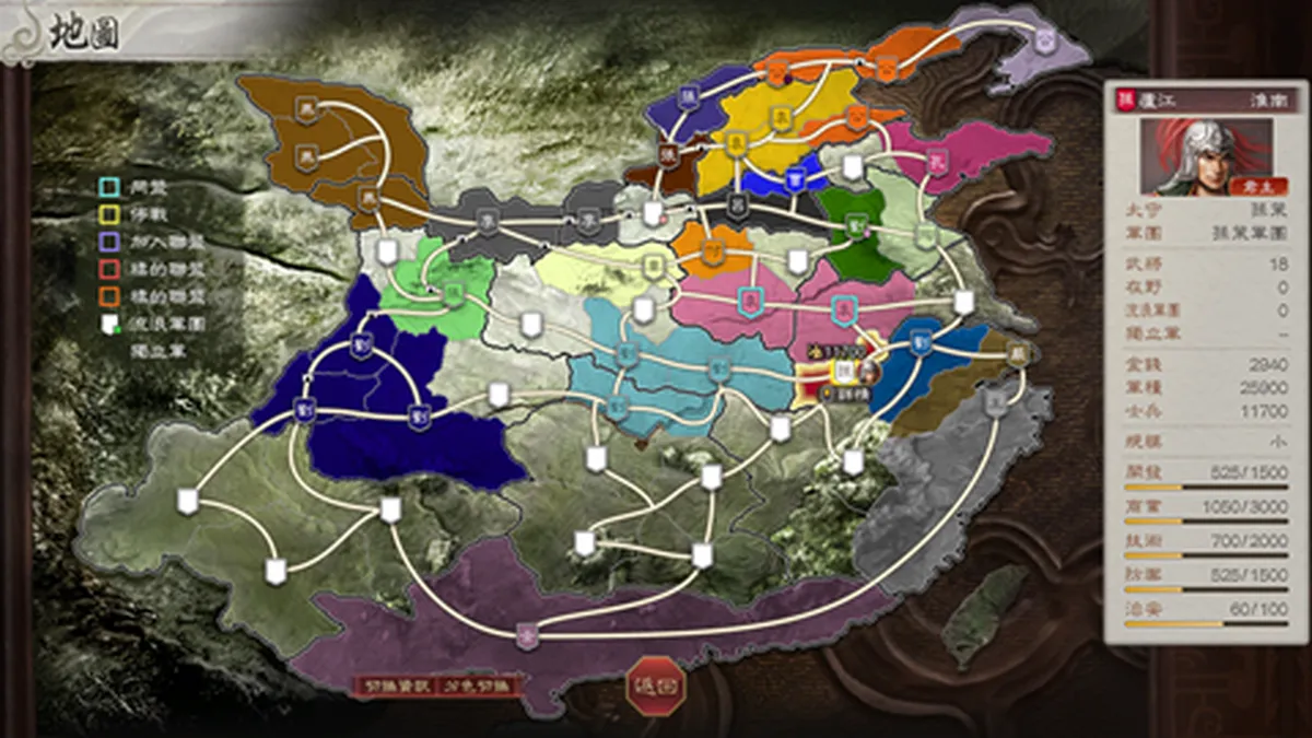 可依不同身分,如君主、軍團長、太守、軍師、一般、頭領、在野,獲得多樣化的指令,
