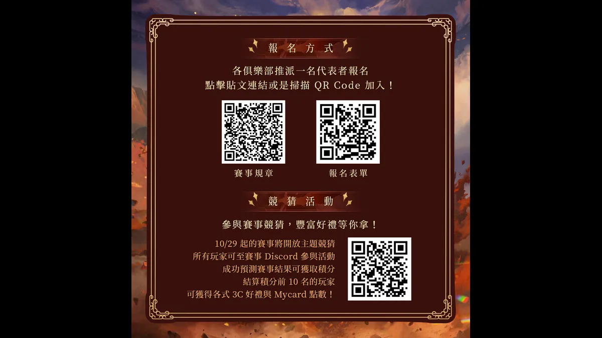 玩家參賽即可獲得「限定稱號」、打進最終八強隊伍更能獲得「限時頭銜」,在遊戲中留下專屬榮耀印記。賽事期間也將進行「應援活動」,在活動Discord 參與競猜即可贏取 3C 好禮、MyCard 點數等特別獎勵.
