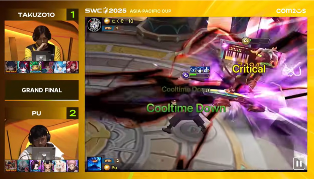 冠軍戰中, 「PU」迎戰來自日本的強敵「TAKUZO10」,雙方展開了一場頂尖對決。關鍵的聽牌局上,「PU」果斷選擇高爆發魔靈—— 「暗屬性虎杖悠仁」。在首回合中,他施放技能「黑閃:4連擊」,瞬間將「TAKUZO10」滿血的「風屬性星際行者」秒殺,全場驚呼連連!