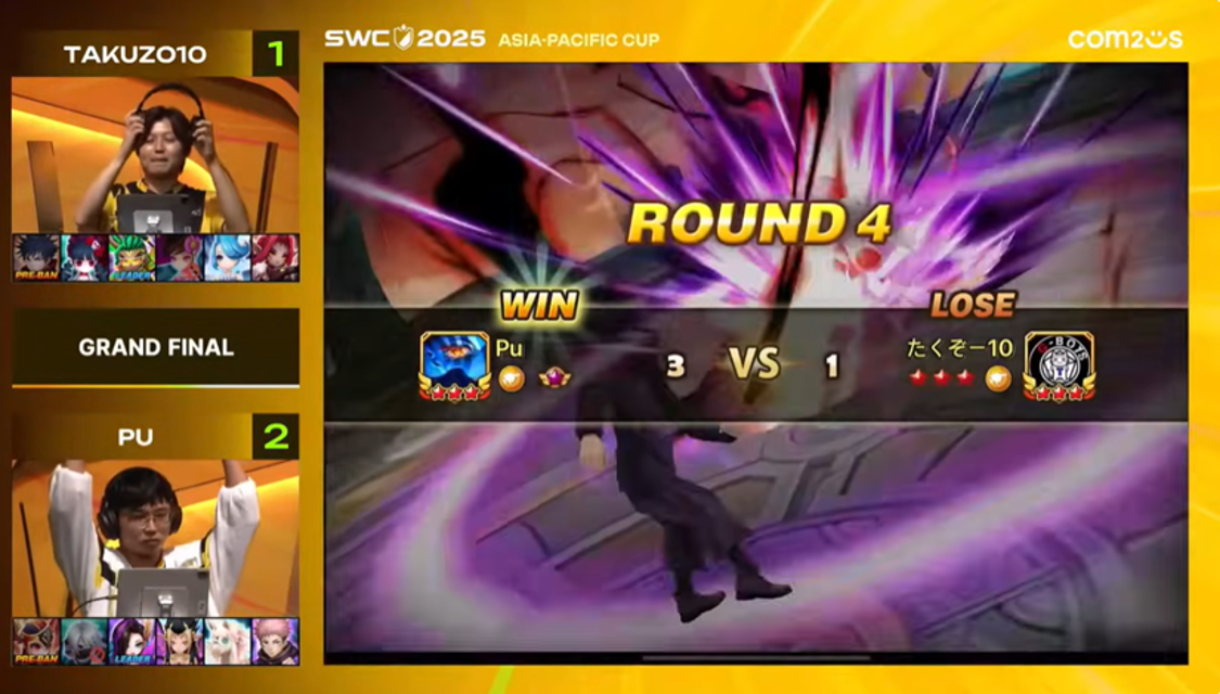 Com2uS 旗下《魔靈召喚》一年一度的全球電競盛事SWC2025亞洲區決賽於10月1 8日在韓國釜山圓滿落幕。最終由越南選手「PU」勇奪冠軍,贏得10.000 美元獎金,並與亞軍「TAKUZO10」及季軍「KELIANBAO」攜手晉級世界總決賽.