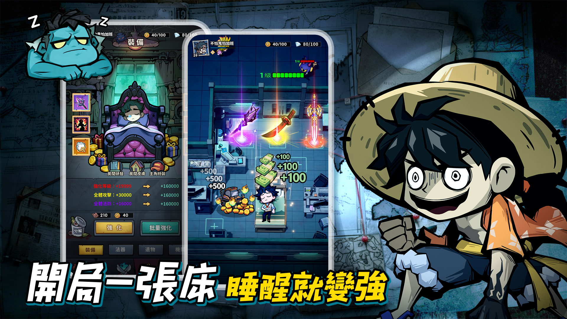 從默默無聞的「打工人」到戰力爆表的守夜統帥,體驗逆襲爽感!養成系統深度解鎖,房間升級、英雄進階、專屬裝備、技能覺醒……社畜和英雄一路開掛,最終成神!