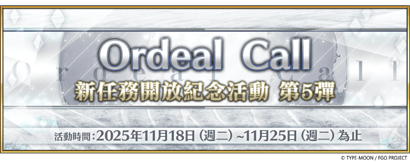 為紀念「Ordeal Call」新任務的開放,即日起至11月25日(二)12:59期間,將限時舉辦「Ordeal Llame:新任務開放紀念活動 第5彈」.