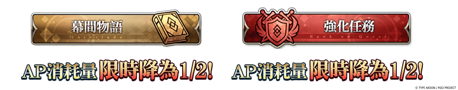 | 「幕間物語」、「強化任務」AP消耗量限時降為1/2 |