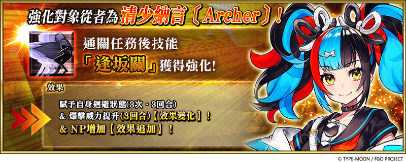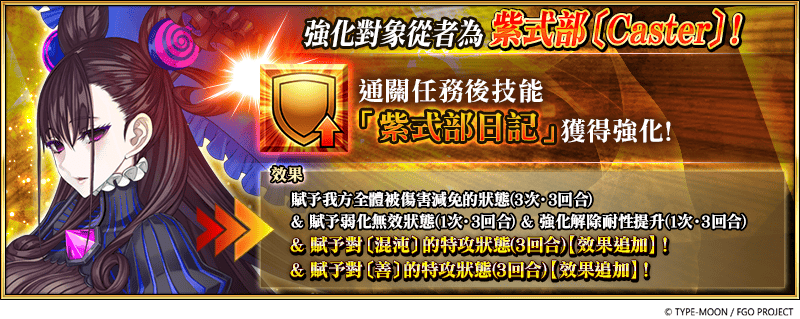 即日起,迦勒底之門中將常駐追加「★5(SSR)清少納言〔Archer〕」、「★5(SSR)紫式部〔 Caster〕」的特別任務「從者強化任務」,通關任務後,不僅技能將獲得強化,還能得到聖晶石作為獎勵。
