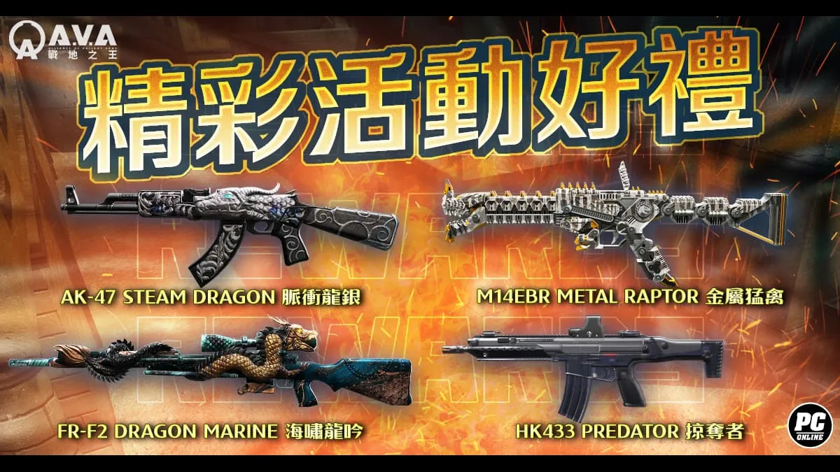另外,遊玩「沙漠陣地」達指定場次,即可獲得對應區間獎勵,虛寶內容包含多種寶箱和「HK433 Predator 掠奪者」限定抽獎;其他活動還有「M14EBR Metal Raptor 金屬猛禽」、「AK-47 Steam Dragon 脈衝龍銀」、「FR-F2 Dragon Marine海嘯龍吟」⋯⋯等更多獲得永久槍的機會,還請菁英們立即前往官方網站,查看更多活動詳情與完整改版內容。與戰友一齊回味當年、再次沉浸於「小心!手榴彈!」的激戰時光吧!