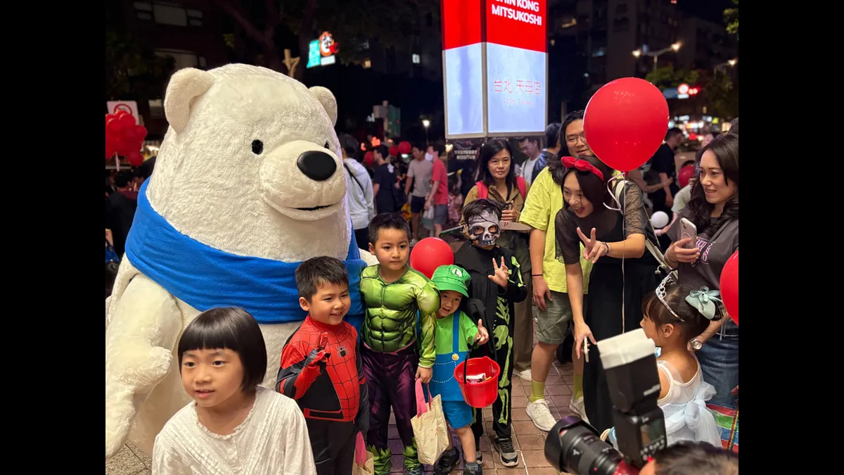 寒霜大白熊首次登場於天母搞什麼鬼與現場大小領主合影送糖果