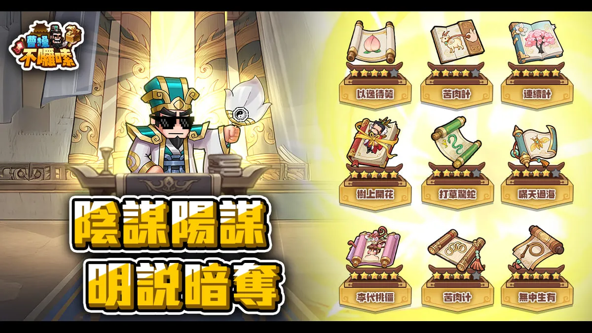 白天要搞「即時拖拉指揮」部隊,玩「結盟到背刺」的宮心計;晚上還要趕場「斜槓」!一下要去「三國大胃王」吃到飽,一下要去「雞腿爭奪賽」搶宵夜,這三國很瘋狂,「斜槓」系KUSO 經營手遊《曹操不囉嗦》才是最KUSO的三國手遊!