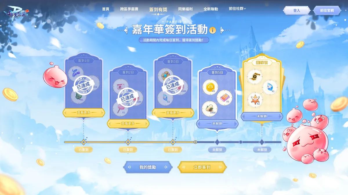 冒險同樂嘉年華,聲援簽到拿限定稱號!