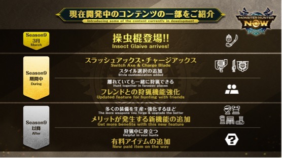 最新的更新資訊與今後的藍圖都會在11月25日(二)播放的官方YouTube節目「MH Ahora導航」介紹,歡迎收看。