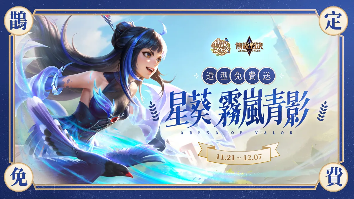 呼應文化祭的「生態守護」精神,《Garena 傳說對決》同步推出全新特效造型 「星葵霧嵐青影」。此造型為2024年玩家造型設計大賽冠軍作品,該活動以玩家共創為核心,邀請大眾一起參與角色外觀發想,而今年星葵的新造型也象徵著社群共創精神的實現。玩家只要參與遊戲內「別怕我保你」系列任務,透過輕鬆互動了解台灣原生動物,即可免費獲得「星葵霧嵐青影」全新造型,期望以創意結合生態關懷,讓遊戲化行動成為守護生態的橋樑。