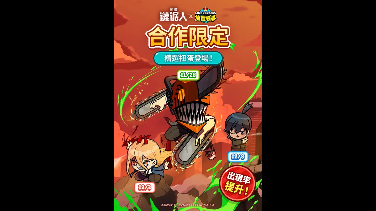 LY Corporation旗下的放置型 RPG《LINE Rangers放置戰爭》於今日11月28日(五)開始與電視動畫《鏈鋸人》展開合作活動.
