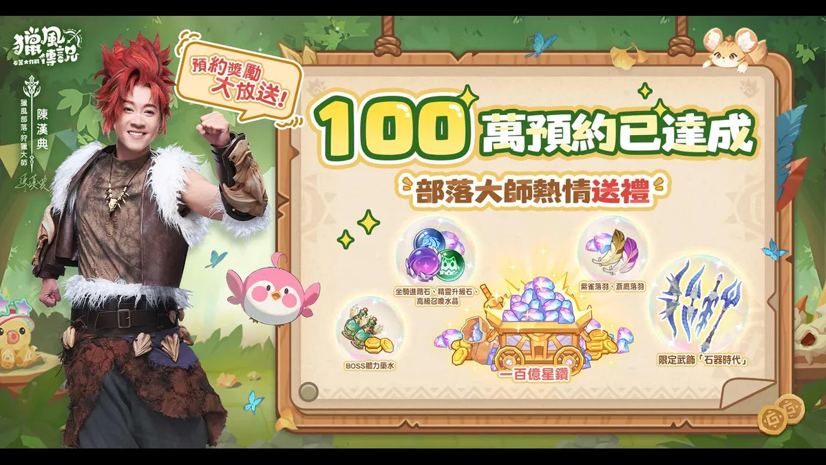 全新治癒系輕冒險RPG《獵風傳說:石器大作戰》今(4)日已於iOS Android: Android.物券登入送」、「百億星鑽簽到領」等系列開服活動,並宣布事前預約人數突破100萬人次,全檔位獎勵均已解鎖,勇者可於遊戲內郵箱領取預約豪禮.