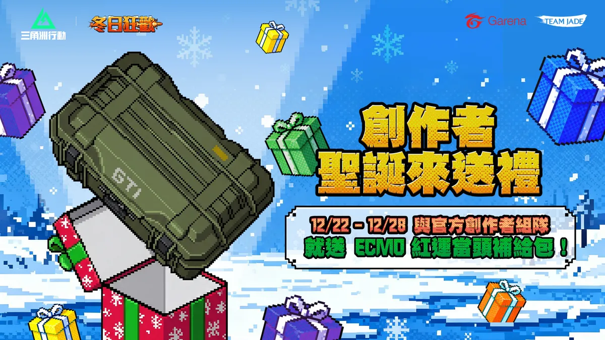 12 月 22 日至 12 月 28 日,玩家只要與《Garena®三角洲行動》官方認證創作者組隊遊玩,即可獲得限定獎勵 《ECMO 紅運當頭補給包》.官方也將於近期公布完整認證創作者名單,玩家可鎖定創作者社群平台,把握與其並肩作戰的機會,甚至有機會讓自己的戰場英姿登上創作者作品中.