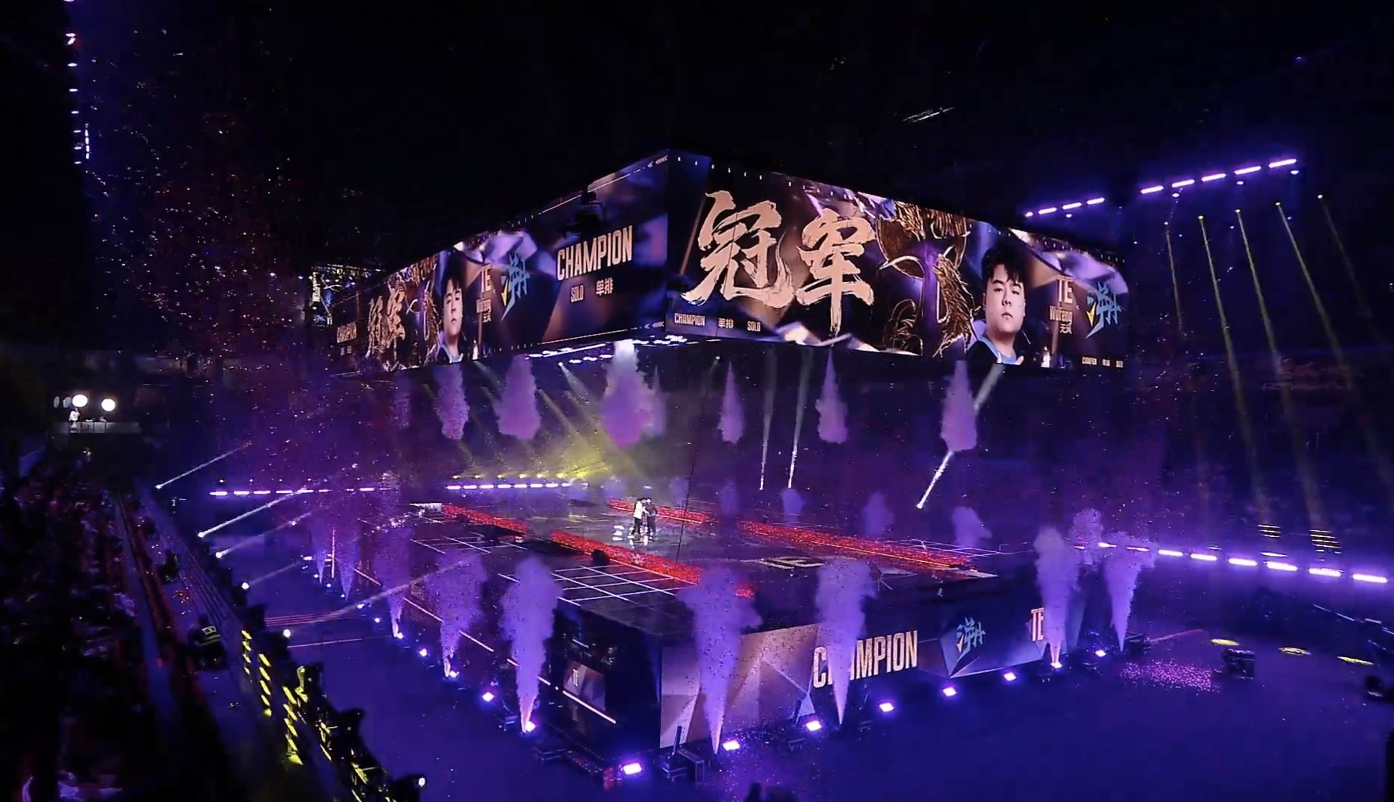 而在關鍵第七局末,戰況演變成由 TE.WuFeng、ASE.Xuanyuan 與 BBE.Froztivus的三強混戰,冠軍即將脫穎而出。最終由TE.WuFeng年單排決賽冠軍獎盃.TE.WuFeng在這座群星匯聚的舞台上,用實力向世界證明自己,開啟了職業生涯的嶄新篇章。