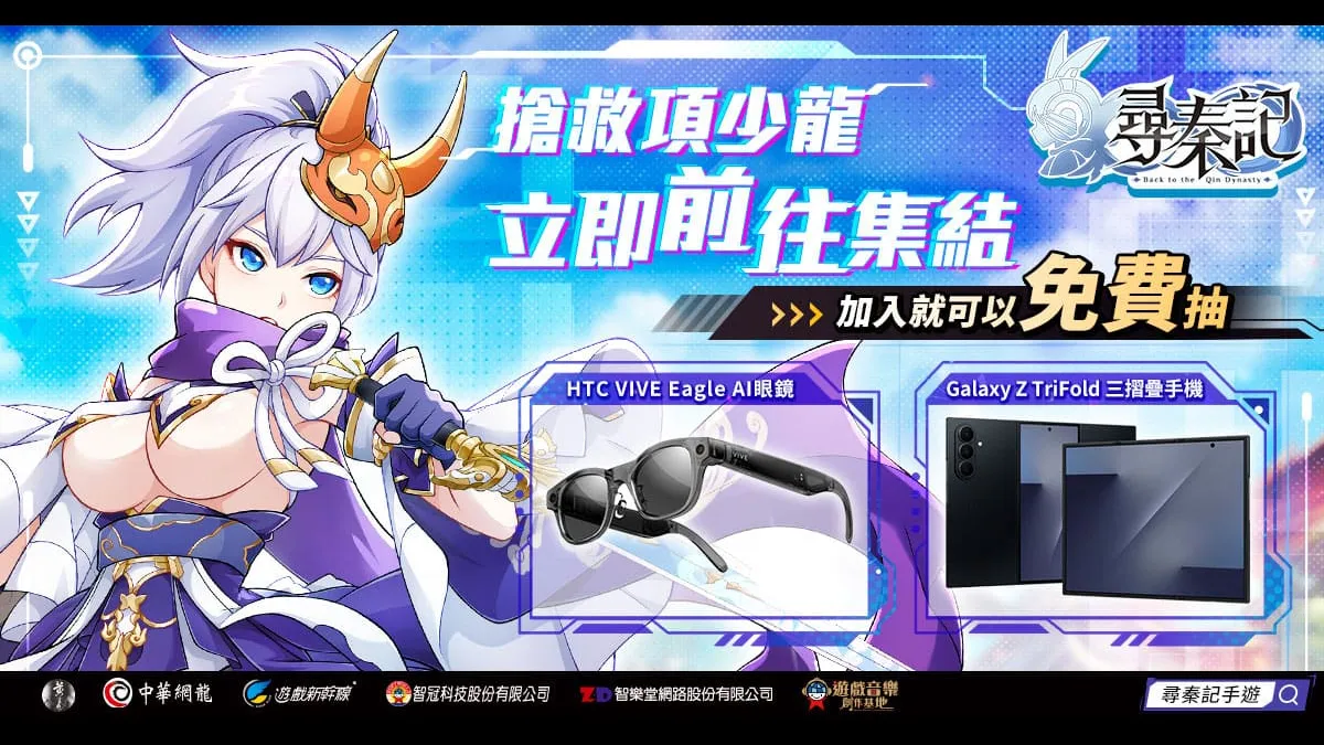 《尋秦記》將於12月29日至2026年1月31日展開「搶救項少龍:你!是誰派來的」穿越計畫,由AI少女LISA號召穿越者回到秦朝,解救項少龍並揭開歷史背後的真相。本次活動緊扣「穿越・洞見未來」與「展開視野」核心概念,當集結人數累積達5 carpetas, HTC VIVE Eagle AI, 10 carpetas, Samsung Galaxy Z TriFold摺疊手機,讓玩家戴上眼鏡洞見未來、展開手機即刻穿越,後續也將隨預約進度解鎖更多驚喜獎勵。