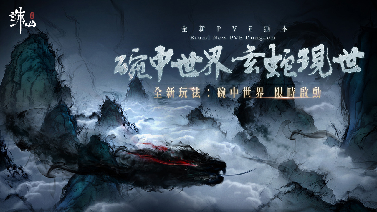 雲海望無垠,濃霧渺無定!玩家踏入碗中天地,宛如置身潑墨而成的幻境世界,雲霧翻湧、群峰隱現,看似詩意盎然,實則危機四伏。潛伏其中的上古兇物-遊鱗墨蝰,原為棲息深湖的千年水蛇,身死後元神遭囚於白碗天地,反因純粹靈氣而變得更加兇悍,伺機吞噬誤入其中的人。玩家務必謹慎應對潛伏於此的強敵,打敗強敵通關者即可獲得藍色稱號-點墨盡乾坤。此外,玩家也有機會在副本中獲得多項高階養成與裝備資源,包含375/395品質裝備、星魄與魂源相關道具,以及可用於神兵與外觀兌換的重要素材,協助玩家全面提升戰力.