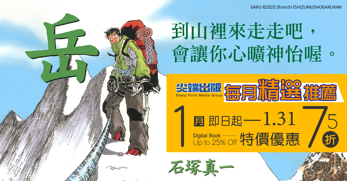 即日起-1/31 尖端每月精選推薦《岳》優惠75折!