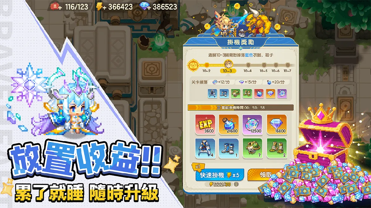 同時,遊戲提供養成資源0損返還機制,再也不用擔心看花眼養錯角!即使離線休息,角色也會持續累積成長進度,讓玩家隨時都能輕鬆接軌冒險.