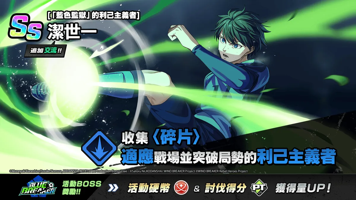 在本次聯動活動中,兩位《藍色監獄》的超人氣角色 「潔世一」 與 「糸師凜」也將依序登場,並由動畫原班聲優獻聲,讓玩家在戰鬥與劇情中完整感受動畫級的臨場張力!