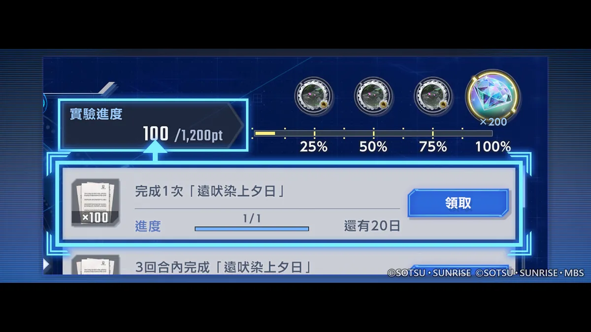 在本次事件中推進各單位的評測實驗進度,即可為單位突破界限!努力讓實驗進度達到100%吧!