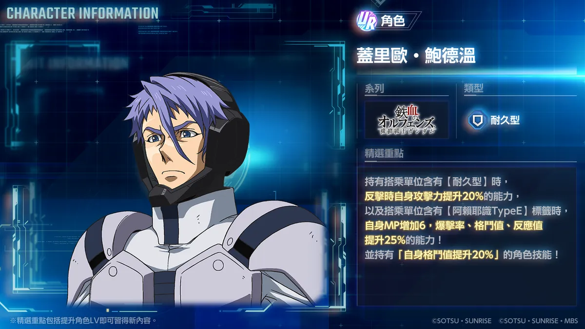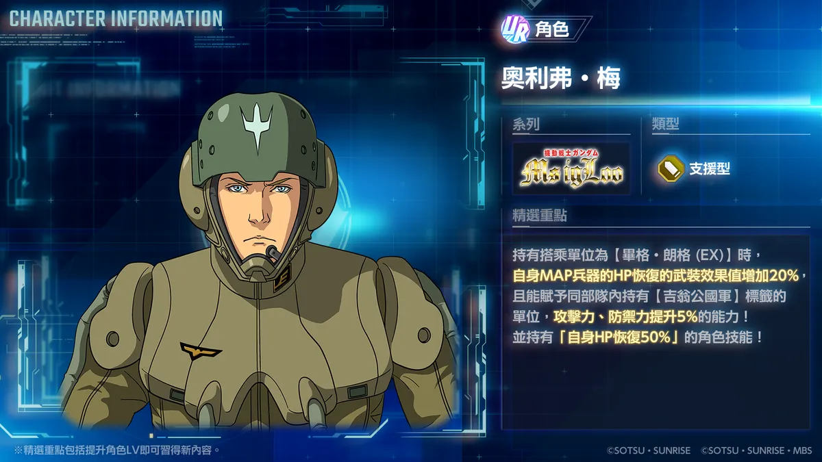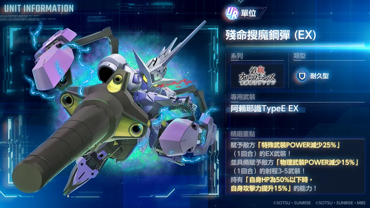 遊戲中已全新推出UR「畢格‧朗格(EX)」/UR「奧利弗‧梅」、UR「殘命搜魔鋼彈(EX) 」/UR「蓋里歐‧鮑德溫」,以及UR支援人員「萊斯達爾‧艾里昂&鰹魚級戰艦」的精選機體補給.