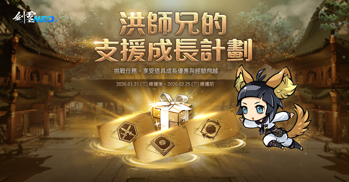 【洪師兄的支援成長計劃】:完成指定任務即可獲得各種金票及經驗值.