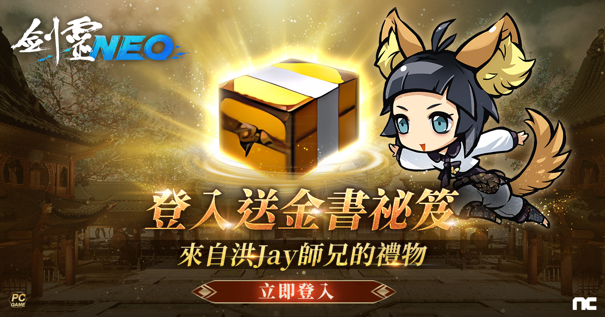 【洪JAY師兄的書信】:為感謝玩家長期以來對《劍靈NEO》的支持與愛護,現在登入遊戲,即可透過「遊戲選單>推播獎勵」,領取 洪 JAY師兄的特別贈禮「金書」.