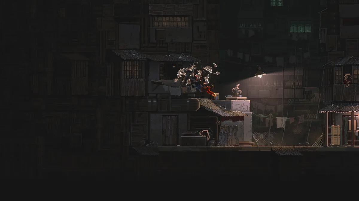 《暗花夜綻 (FLORACIÓN NOIR) 》是一款張力迸發的2D槍武動作遊戲,在腎上腺素飆升的槍戰與招招碎骨的近身搏殺之間,譜出一部新黑色狂想曲.你為一個承諾,踏上一場疾速戮途——快拳、奪槍、挾敵反制。每一次出手,都是槍火與鮮血交織而成的精密殺戮之舞。