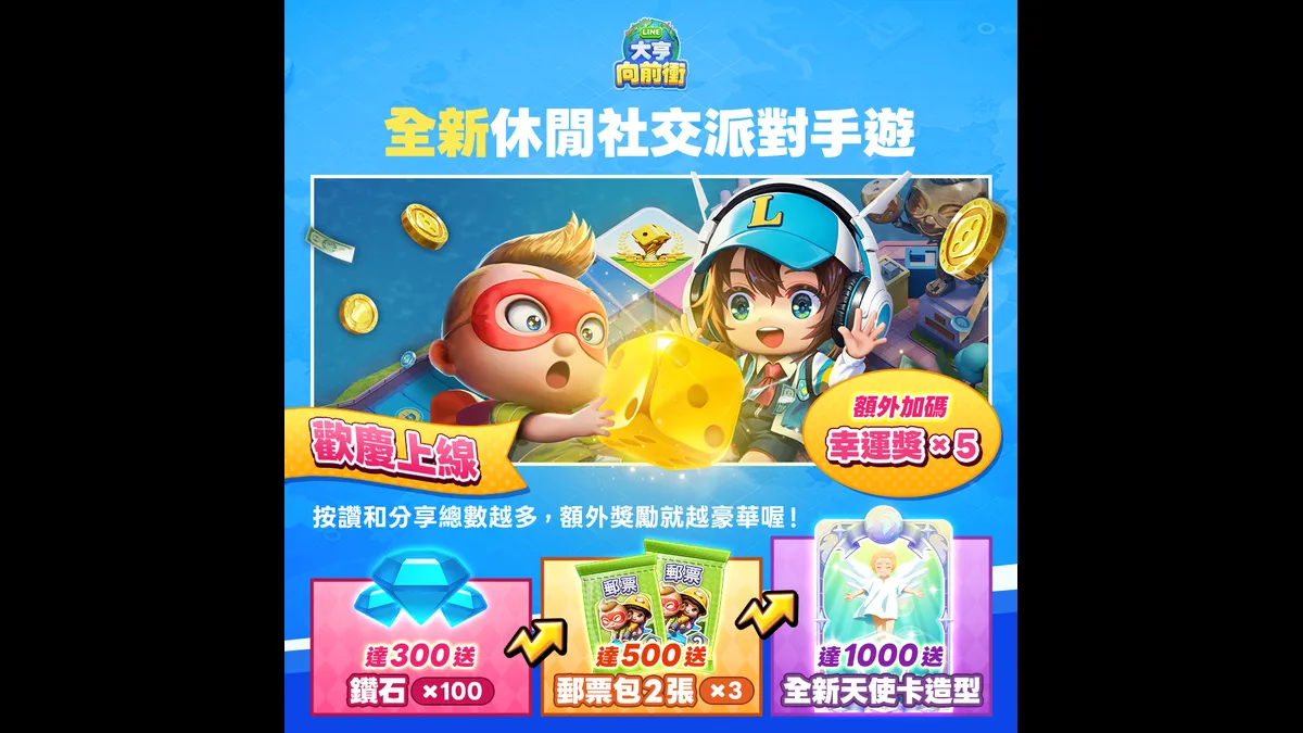 除了《LINE大亨向前衝》遊戲內的慶祝活動,為了歡慶正式上線,並感謝台灣玩家的支持,將接連舉辦社群獎勵活動,為各位探險家送上賀禮.