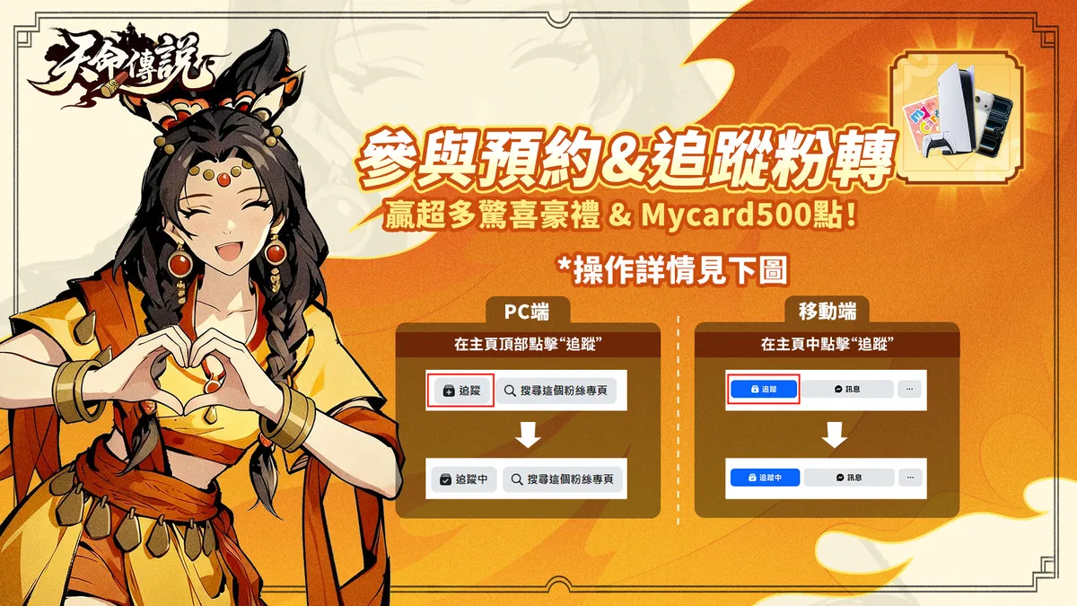想知道公測當日幾點開服?想領取社群專屬的倒數虛寶碼?請務必鎖定《天命傳說》官方粉絲團.官方小編將在社群持續發放不定時福利,並舉辦各類預熱活動,確保每一位天命人都能滿載而歸.