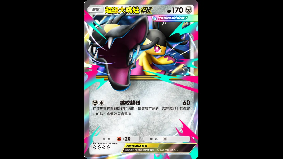 「超級火焰雞ex」是2階進化的超級寶可夢ex,昏厥時雖會被對手獲得3分,但只需少數能量就能造成巨大傷害。