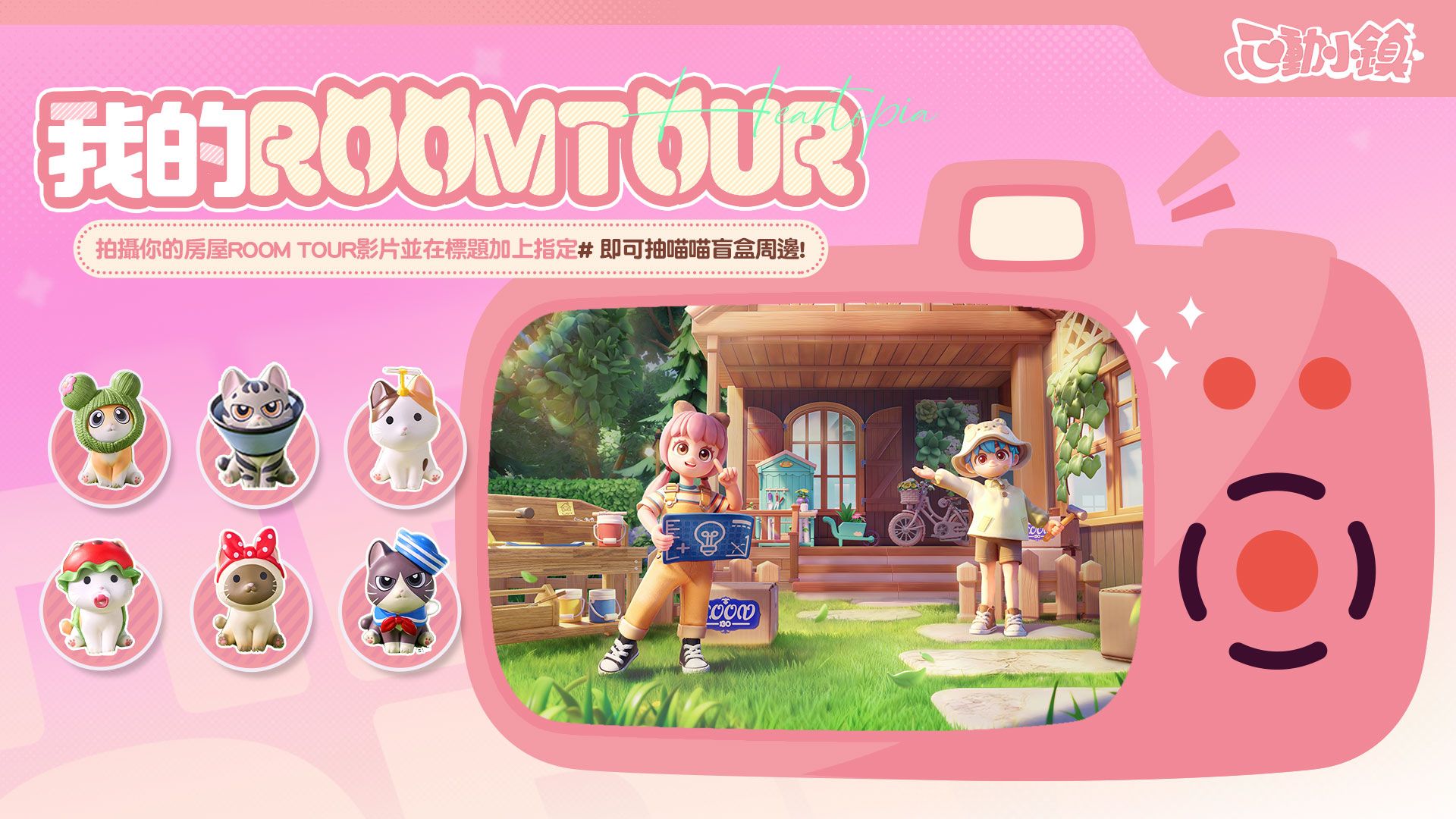 《心動小鎮》Facebook官方粉絲團活動最後倒數中!,參與「好友++」活動,公開個人名片並留下UID與自我介紹,即有機會抽中「滿願星Habitación Tour」募集!只要拍攝房屋裝修影片上傳至YouTube或TikT ok,並於官方貼文留言報名,就有機會獲得超萌的實體「百變喵喵盲盒」.趕快前往官方粉絲團共襄盛舉,秀出你的生活美學並抱走獎勵!