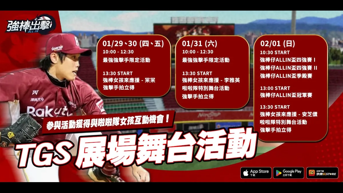 更多展場活動內容、參與方式與相關規則,皆以現場公告為準。歡迎玩家於台北國際電玩展期間親臨《強棒出擊:TODOS IN》展場,共襄盛舉,一同體驗展場限定的棒球互動樂趣。