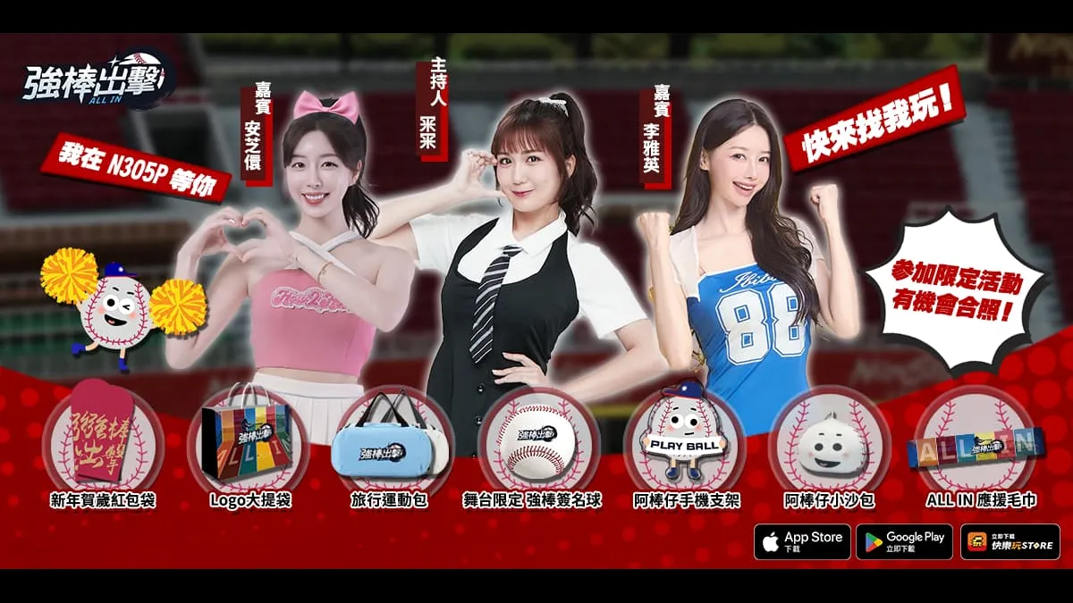 舞台活動期間,啦啦隊女孩將帶來開場應援表演,並與主持人及遊戲團隊一同介紹遊戲特色與展場亮點。現場亦規劃玩家互動橋段,邀請玩家上台進行趣味對戰與即時交流,透過舞台節目與觀眾互動,打造充滿臨場感的棒球主場體驗.