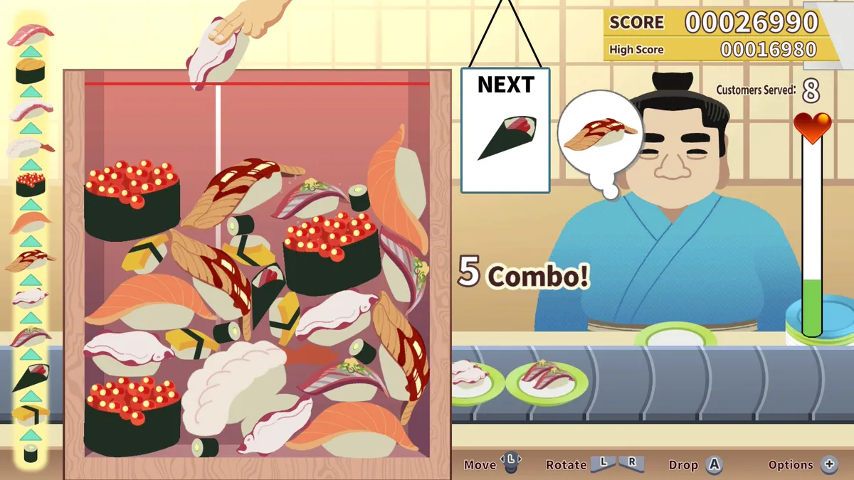 不論是精準地將相同壽司成功合併時的快感,還是壽司滑入狹小縫隙、沿著出乎意料的軌跡移動時的趣味性,都讓人越玩越上癮!