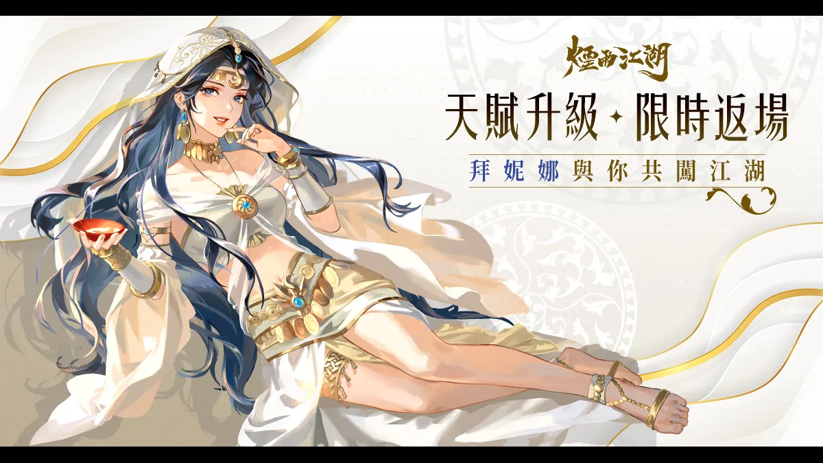 超人氣夥伴「拜妮娜」角色增強,重返江湖!自從覓得聖器「司命」後,拜妮娜對內力流轉的理解達到全新境界。她能更加精準地掌握體內氣息運行的節奏,使內勁大幅提升,戰力隨之暴漲,實力再攀顛峰,成為大俠隊伍中重要戰力。