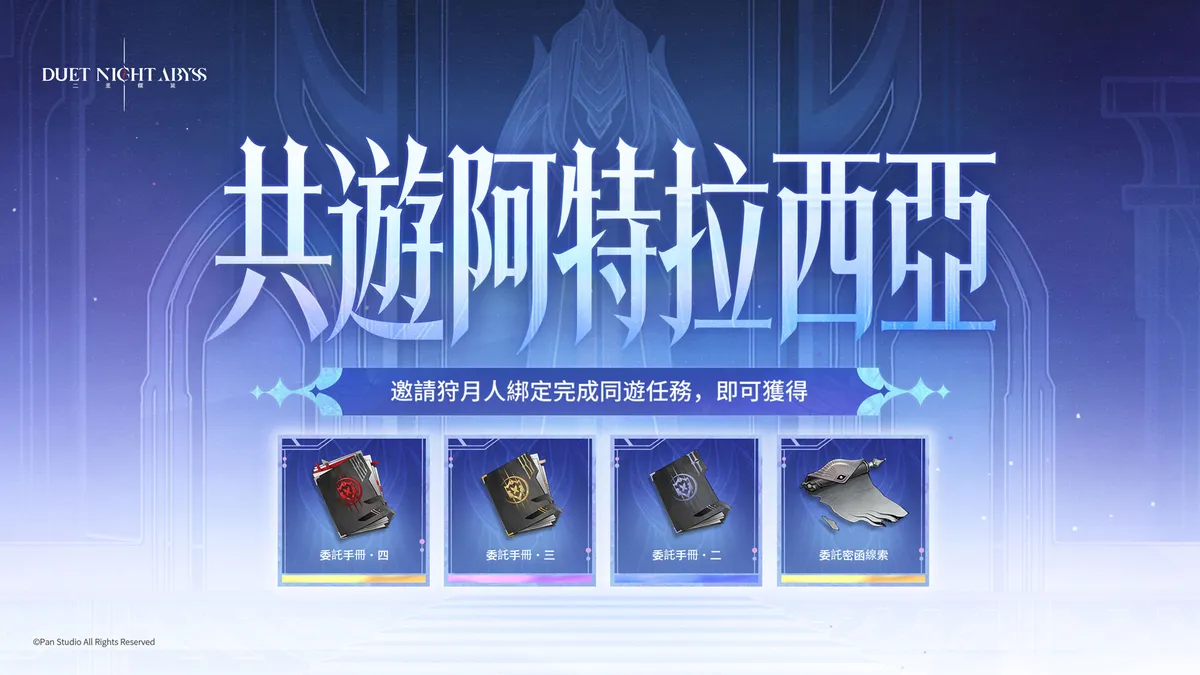 邀請同伴共遊阿特拉西亞大陸,參與網頁活動可獲得「委託手冊」及「委託密函線索」等獎勵.