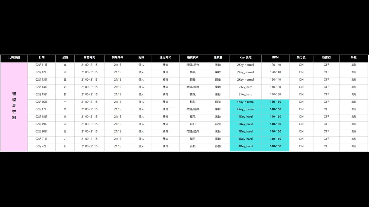 與改版同日登場的《閃耀巔峰戰》預賽(2/11~2/22 ),將是全服玩家展現熱情的最佳舞台。為了讓所有人都能無壓力參與,官方特別將賽制分為適用能力值的「璀璨星芒組」與講求純粹技術的「純粹律動組」,玩家可依喜好擇一報名.