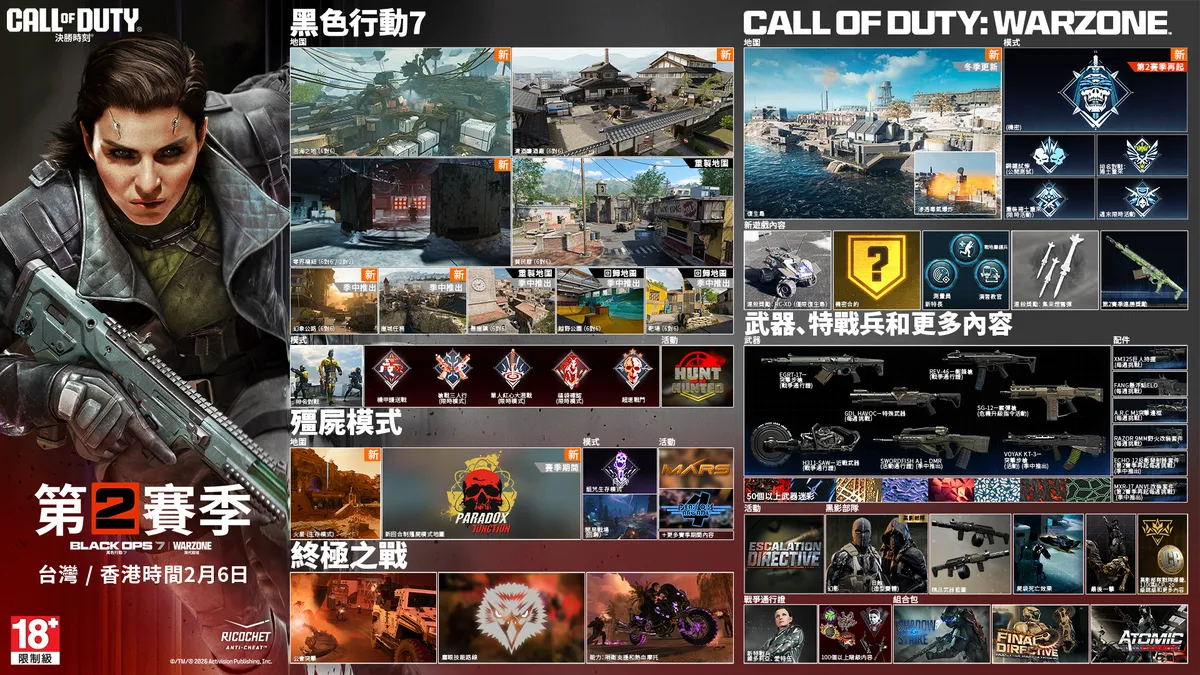 欲了解《決勝時刻:黑色行動7》與《決勝時刻:現代戰域》第2賽季的詳細更新內容,請參閱官方部落格;關於《決勝時刻:黑色行動7》Steam平台特惠資訊,請前往官方網站;更多《決勝時刻》系列作的遊戲資訊,請見《決勝時刻》官方網站。