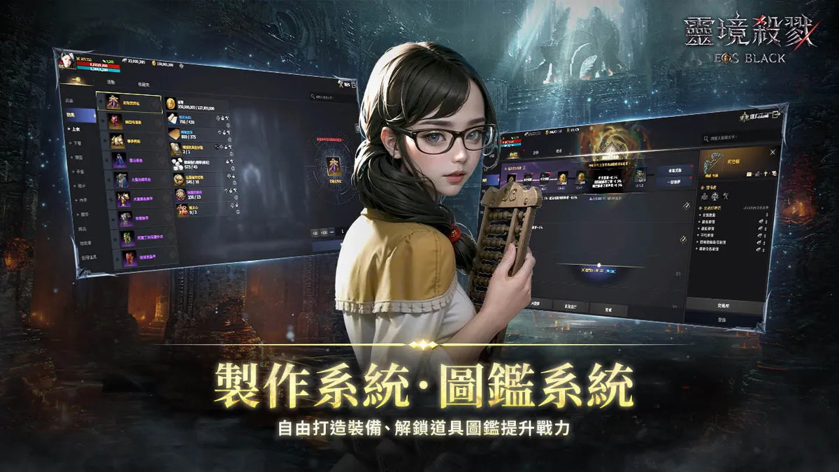 在《靈境殺戮Black》中,裝備除了可以透過擊殺怪物來取得外,玩家也能靠自己的雙手打造強力裝備!只要蒐集指定素材,就能夠透過「製作系統」打造各式裝備與實用道具,例如可提升經驗值獲得效率的「經驗秘藥」;或是符合自身職業的技能書,讓角色的養成方式更加多元。此外,多餘或不再使用的裝備也可以登錄至「圖鑑系統」,收集指定的品項將可獲得對應能力值加成,成為強化角色戰力的另一個重要途徑!