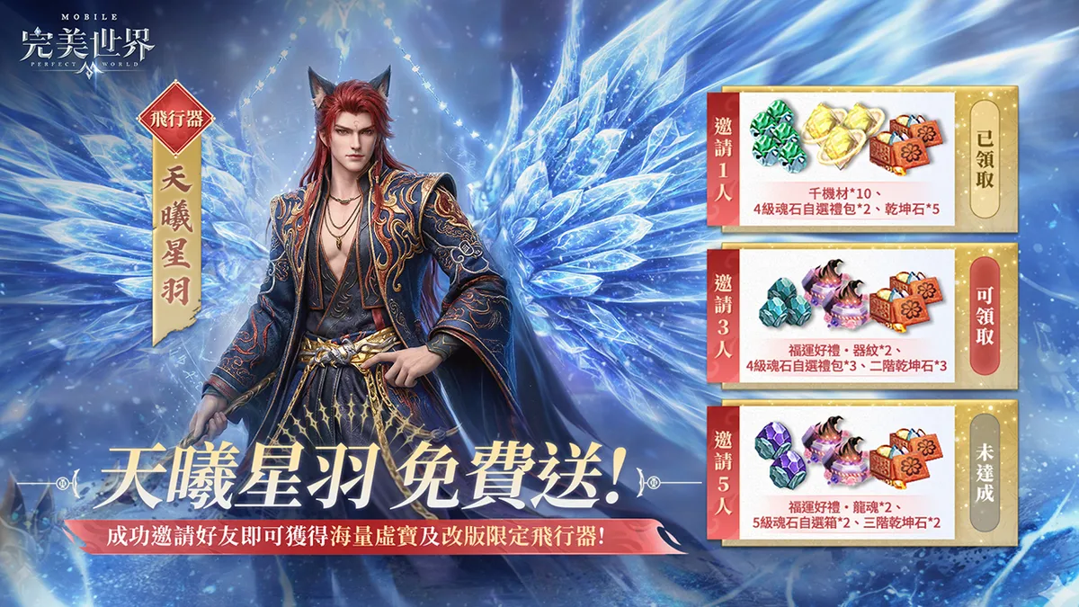 邀請好友一起參與網頁活動,還能獲得天曦星羽飛行器及豐富的虛寶好禮.