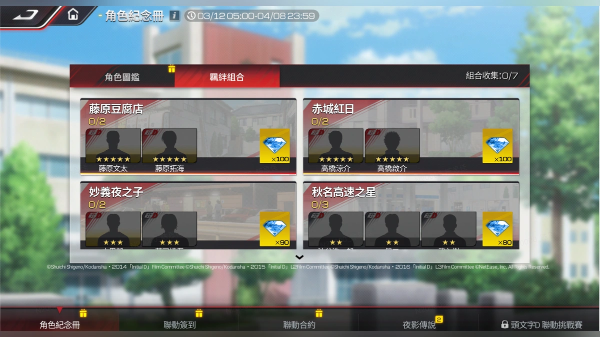 想挑戰秋名山最速傳說?現在就是最好的機會!聯動賽道挑戰將於 3 a 19日接力登場。車手將與藤原拓海、藤原文太、中里毅等傳奇車手,挑戰最速神話。不只如此,遊戲將重現「膠帶殊死戰」玩法,車手操控車輛的轉向將受到限制,考驗極限過彎技術。參與活動完成挑戰達到指定星星數量可獲得傳奇車隊「妙義NightKids」、「赤城RedSuns」的聯動車貼.