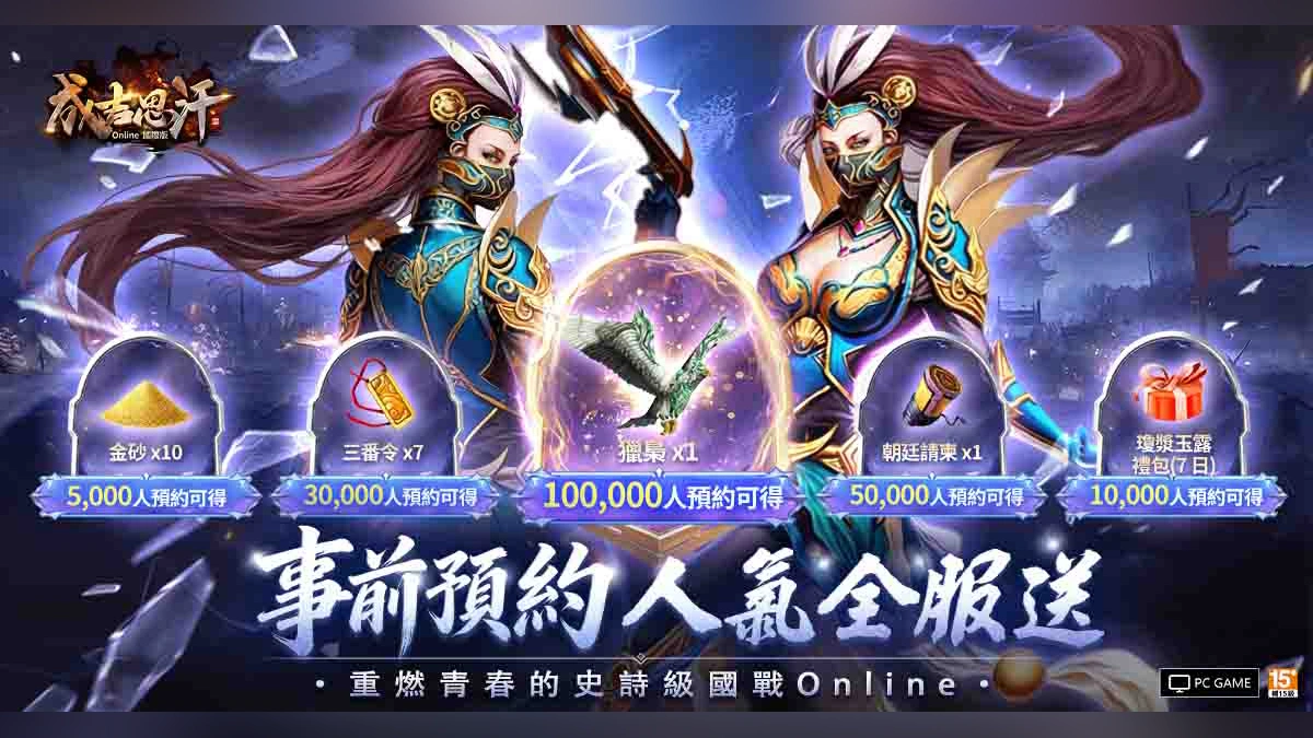 真正的國戰,從來不是一個人的舞台,而是兄弟並肩、熱血交鋒的暢快對決!為號召更多玩家共赴盛世征途,只要事前預約人數突破指定門檻,上市後全服玩家即可共享豐富虛寶獎勵。從金砂、瓊漿玉露禮包,到三番令、朝廷請柬與最終解鎖的獵梟,獎勵隨預約人數節節攀高。當所有勇士集結到位,這場重燃青春的帝國征途,將由你我一同揭開序幕。