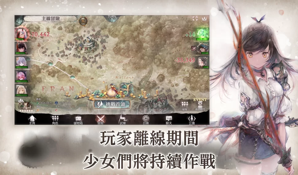 ・玩家離線期間,少女們會持續作戰、逐漸升級變強的「放置機制」。